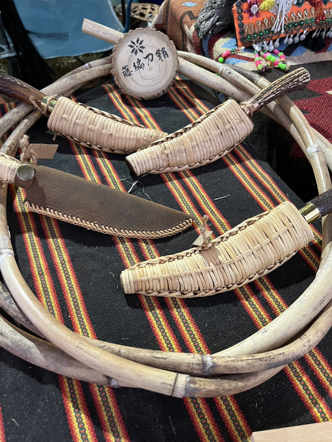 另一邊的市集則聚集了手工藝創作者及他們的作品。臺灣的手工藝創作市集眾多,同時店家品質較參差,也有人以進口貨品為主。我在音樂節的攤位來回走兩次,也細心留意店家與消費者的互動。雖然當代臺灣本地供應材料(例竹、藤)量已很少,我們不應忽視全球貿易的影響。但是,仍有人會堅持就地取材、製作原材料。進去山林並尋找自然植物,是一種走進、找回文化的路。