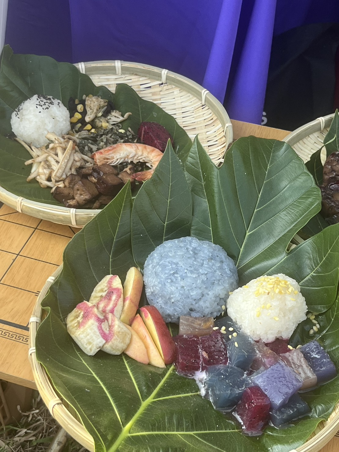 文化舞台兩邊各有一個主題市集,一邊是料理為主,另一邊則以工藝為焦點。作為行動派的美食人類學家,筆者當然不放過各種料理。跟筆者近年常參與及協助擺攤的臺東慢食節稍為不同,店家不限於臺東,族群料理也不止有阿美族的傳統方式。慢慢走進市集裡,既聞到碳火烤豬肉的肉香,在煙霧中看到煙醺好的飛魚、創新的荖葉套餐,來自花蓮的夜市原住民點心,以及讓人心廣神怡的調酒。